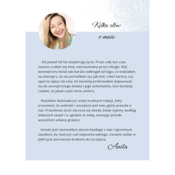 Dzisiaj wiem, że doświadczyłam tego, żeby wspierać takie osoby jak Ty, które tęsknią za największą miłością świata. Tej miłości nie ma na zewnątrz. Ona jest w Tobie. Wiem, że znajdziesz tam wiele wskazówek oraz ważnych słów, które mogą odmienić Twoje życie.